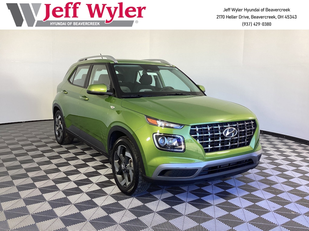 Clean CARFAX. Jeff Wyler Hyundai of Beavercreek is excited to offer this beautiful 2023 Hyundai Venue SEL in Green Apple. Well equipped with: Option Group 01, 4-Wheel Disc Brakes, 6 Speakers, 6.052 Axle Ratio, 6.5J x 17" Alloy Wheels, ABS brakes, Air Conditioning, Alloy wheels, AM/FM radio, Apple CarPlay & Android Auto, Auto High-beam Headlights, Automatic temperature control, Brake assist, Bumpers: body-color, Cargo Net, Cargo Tray, Carpeted Floor Mats, Cloth Seat Trim, Delay-off headlights, Driver door bin, Driver vanity mirror, Dual front impact airbags, Dual front side impact airbags, Electronic Stability Control, Front anti-roll bar, Front Bucket Seats, Front Center Armrest, Front reading lights, Front wheel independent suspension, Fully automatic headlights, Illuminated entry, Leather Shift Knob, Leather steering wheel, Low tire pressure warning, Mudguards, Occupant sensing airbag, Outside temperature display, Overhead airbag, Overhead console, Panic alarm, Passenger door bin, Passenger vanity mirror, Power door mirrors, Power moonroof, Power steering, Power windows, Radio: AM/FM/HD Display Audio, Rear Seat Cup Holder, Rear window defroster, Rear window wiper, Remote keyless entry, Roof rack: rails only, Security system, Speed control, Speed-sensing steering, Split folding rear seat, Spoiler, Steering wheel mounted audio controls, Tachometer, Telescoping steering wheel, Tilt steering wheel, Traction control, Trip computer, and Variably intermittent wipers.Come see the excitement at Jeff Wyler Hyundai of Beavercreek! Visit us online at www.jeffwylerhyundaiofbeavercreek.com Proudly Serving: Cincinnati, Dayton, Centeville, Ketttering, Moraine,Beavercreek, Xenia,Oakwood, Trotwood, Vandalia, Kettering, Wright Patterson, Riverside, Engelwood, Miamisburg, Huber Heights, Springboro, Brookville, Fairborn, West Carrollton, Yellow Springs, Bellbrook, Springfield Columbus, Hamilton, West Chester, Monroe, Fairfield. PROUDLY SERVING: CINCINNATI, DAYTON,COLUMBUS, LOUISVILLE, LEXINGTON, INDIANAPOLIS,HAMILTON, FLORENCE, ALEXANDRIA, BEAVERCREEK, SPRINGDALE, WEST CHESTER, MONROE, FAIRFIELD, KENWOOD, NEWPORT AND ALL OF GREATER CINCINNATI OHIO, INDIANA, AND NORTHERN KENTUCKY.