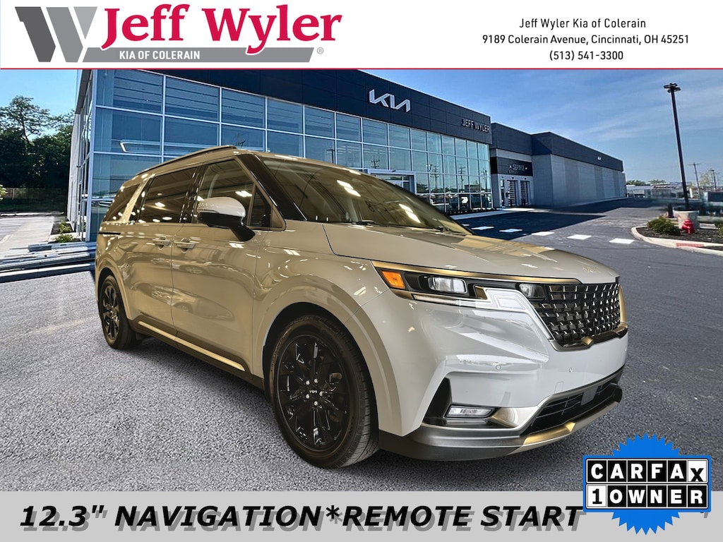 Jeff Wyler Kia of Colerain is excited to offer this beautiful-looking 2023 Kia Carnival SX in Ceramic Silver. 3.51 Axle Ratio, 3rd row seats: split-bench, 4-Wheel Disc Brakes, 8 Speakers, ABS brakes, Air Conditioning, Alloy wheels, AM/FM radio: SiriusXM, Apple CarPlay & Android Auto, Artificial Leather Seat Trim, Auto High-beam Headlights, Automatic temperature control, Brake assist, Bumpers: body-color, Carpeted Floor Mats (8-Passenger), Compass, Delay-off headlights, Driver door bin, Driver vanity mirror, Driver's Seat Integrated Memory System, Dual front impact airbags, Dual front side impact airbags, Electronic Stability Control, Emergency communication system, Exterior Parking Camera Rear, Four wheel independent suspension, Front anti-roll bar, Front Bucket Seats, Front Center Armrest, Front dual zone A/C, Front fog lights, Front reading lights, Fully automatic headlights, Heated & Ventilated Front Bucket Seats, Heated door mirrors, Heated front seats, Illuminated entry, Knee airbag, Leather Shift Knob, Leather steering wheel, Low tire pressure warning, Memory seat, Mud Guards, Navigation System, Occupant sensing airbag, Outside temperature display, Overhead airbag, Overhead console, Panic alarm, Passenger door bin, Passenger vanity mirror, Power door mirrors, Power driver seat, Power Liftgate, Power passenger seat, Power steering, Power windows, Radio: AM/FM/HD Audio System, Rear air conditioning, Rear anti-roll bar, Rear reading lights, Rear window defroster, Rear window wiper, Reclining 3rd row seat, Remote keyless entry, Roof rack: rails only, Security system, Speed control, Speed-sensing steering, Split folding rear seat, Spoiler, Steering wheel mounted audio controls, Tachometer, Telescoping steering wheel, Tilt steering wheel, Traction control, Trip computer, Turn signal indicator mirrors, Variably intermittent wipers, Ventilated front seats, and Wheels: 7.5J x 19" Black Painted Alloy Our PRE-OWNED vehicles are put through a rigorous 167- POINT QUALITY ASSURANCE INSPECTION along with an average amount of over $1,400.00 SPENT to recondition each vehicle so we can be sure to deliver you the highest quality vehicle like you deserve! ***ONLINE PRICE DOES NOT INCLUDE WYLER FAMILY FIRST PACKAGE***