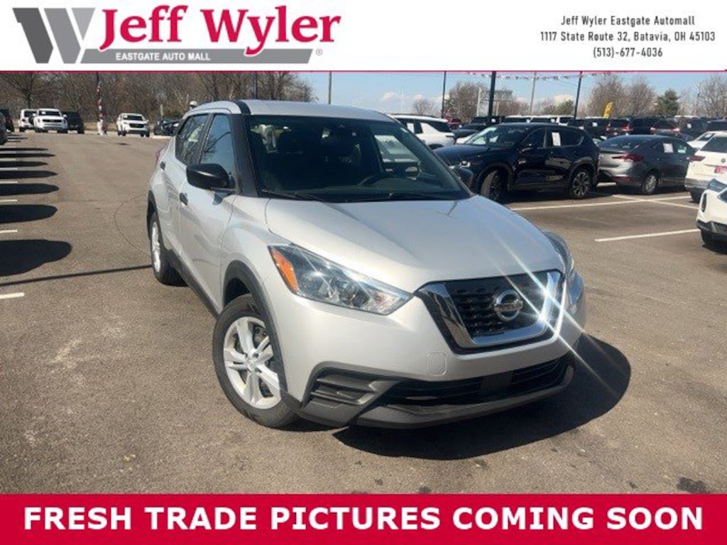 Jeff Wyler Eastgate Auto Mall is delighted to offer this gorgeous 2020 Nissan Kicks S in Brilliant Silver Metallic. Well equipped with: 16" Steel Wheels w/Full Covers, 3.927 Axle Ratio, 6 Speakers, ABS brakes, Air Conditioning, AM/FM radio, Auto High-beam Headlights, Blind Spot Warning, Brake assist, Bumpers: body-color, Carpeted Floor Mats w/Cargo Mat, Center Armrest w/Storage, Cloth Seat Trim, Driver door bin, Driver vanity mirror, Driver's Seat Mounted Armrest, Dual front impact airbags, Dual front side impact airbags, Electronic Stability Control, Front anti-roll bar, Front Bucket Seats, Front reading lights, Front wheel independent suspension, Fully automatic headlights, Illuminated entry, Knee airbag, Low tire pressure warning, Occupant sensing airbag, Outside temperature display, Overhead airbag, Panic alarm, Passenger door bin, Passenger vanity mirror, Power door mirrors, Power steering, Power windows, Radio data system, Radio: AM/FM Audio System, Rear Parking Sensors, Rear reading lights, Rear side impact airbag, Rear window defroster, Rear window wiper, Remote keyless entry, Speed control, Splash Guards Grain (4 Piece), Split folding rear seat, Sport steering wheel, Steering wheel mounted audio controls, Tachometer, Telescoping steering wheel, Tilt steering wheel, Traction control, Trip computer, and Variably intermittent wipers. Clean CARFAX. Certified. Awards: * 2020 KBB.com 10 Coolest New Cars Under $20,000 Ask about available certifications. Used vehicles 10 years of age or newer with less than 100,000 miles are eligible for the Wyler Assurance Program, but eligible vehicles must pass our reconditioning process and multi-point inspection. Provided the vehicle passes inspection, vehicles will be eligible for the 6 month/6,000 mile limited warranty. The 6 month/6,000 mile limited warranty is NOT available on AS-IS vehicles, wholesale vehicles, lease buyback/pass-thru vehicles or un-inspected vehicles. Note that this program can also apply to vehicles where the remaining factory coverage is less than 6 months or 6,000 miles. Please check the Federal Trade Commission (FTC) Buyers guide on the vehicle for full details as to whether or not warranty coverage may apply. Contact Dealer for additional details. The Wyler Assurance 6 month/6,000 Mile limited warranty ends 6 months from the date of the Retail Purchase Agreement (BUYERS ORDER) or when the vehicle's odometer registers 6,000 additional miles to the mileage listed on the BUYERS ORDER, whichever comes first. Your Deductible - The warranty holder on your contract pays the first $100 of each covered repair.