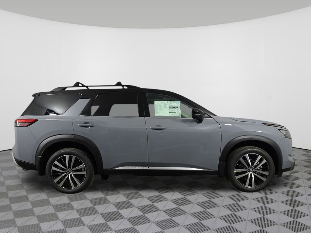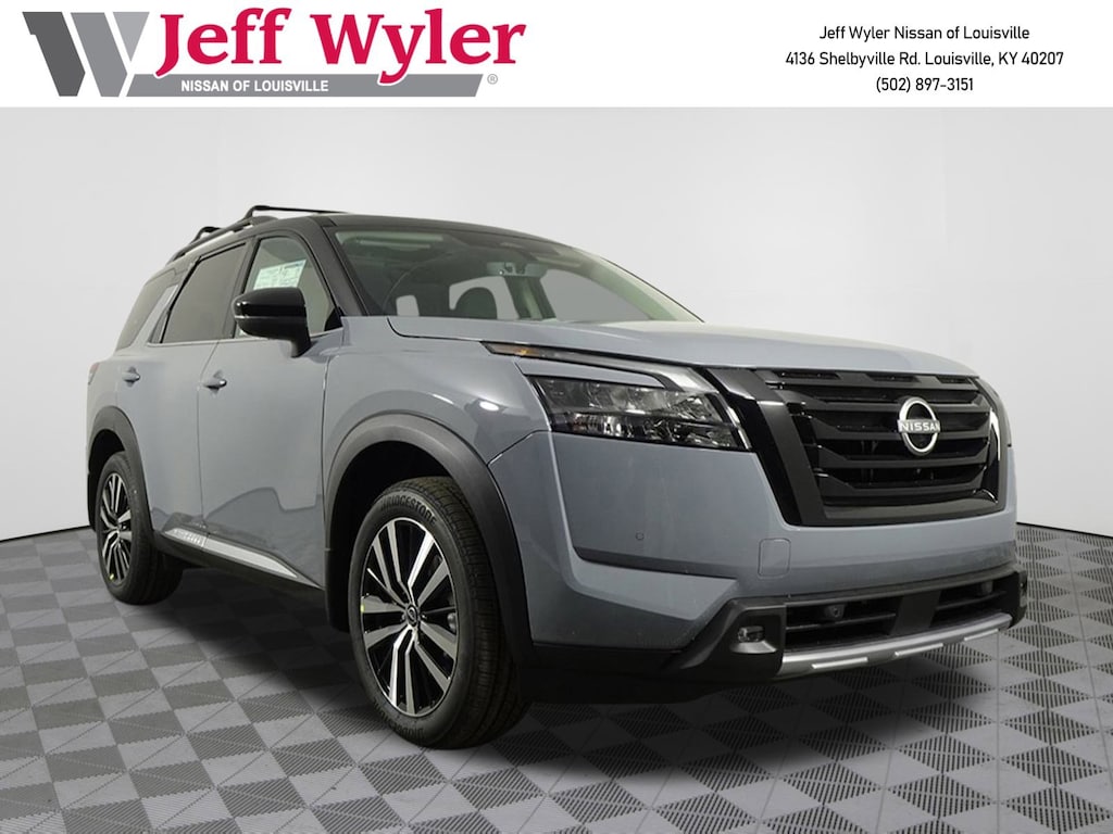 Recent Arrival! Jeff Wyler Nissan of Louisville is proud to offer this great-looking 2025 Nissan Pathfinder Platinum in Solid Gray/Super Black. Well equipped with: 4WD, 13 Speakers, 3rd row seats: bench, 4-Wheel Disc Brakes, ABS brakes, Air Conditioning, Alloy wheels, AM/FM radio: SiriusXM, Auto High-beam Headlights, Auto tilt-away steering wheel, Auto-dimming Rear-View mirror, Automatic temperature control, Bodyside moldings, Bose Premium Audio System, Brake assist, Bumpers: body-color, Climate Controlled Front Bucket Seats, Delay-off headlights, Driver door bin, Driver vanity mirror, Dual front impact airbags, Dual front side impact airbags, Electronic Stability Control, Emergency communication system, Exterior Parking Camera Rear, Four wheel independent suspension, Front anti-roll bar, Front Bucket Seats, Front Center Armrest, Front dual zone A/C, Front reading lights, Fully automatic headlights, Garage door transmitter: HomeLink, Heads-Up Display, Heated door mirrors, Heated front seats, Heated rear seats, Heated steering wheel, Illuminated entry, Knee airbag, Leather steering wheel, Low tire pressure warning, Memory seat, Navigation system: NissanConnect with Navigation and Services, NissanConnect featuring Apple CarPlay and Android Auto, NissanConnect w/Navigation & Services, Occupant sensing airbag, Outside temperature display, Overhead airbag, Overhead console, Panic alarm, Passenger door bin, Passenger vanity mirror, Power door mirrors, Power driver seat, Power Liftgate, Power moonroof, Power passenger seat, Power steering, Power windows, Radio data system, Radio: AM/FM Audio System, Rain sensing wipers, Rear air conditioning, Rear anti-roll bar, Rear reading lights, Rear seat center armrest, Rear side impact airbag, Rear window defroster, Rear window wiper, Reclining 3rd row seat, Remote keyless entry, Security system, Semi-Aniline Leather-Appointed Seating Surfaces, Speed control, Speed-sensing steering, Speed-Sensitive Wipers, Split folding rear seat, Spoiler, Steering wheel memory, Steering wheel mounted audio controls, Tachometer, Telescoping steering wheel, Tilt steering wheel, Traction control, Trip computer, Turn signal indicator mirrors, Variably intermittent wipers, Ventilated front seats, and Wheels: 20" x 8J Machined Alloy.2025 Nissan Pathfinder Platinum Solid Gray/Super Black Wyler Family First Package Includes: NanoCure Appearance Protection: Exterior & Interior Chemical Sealant Applied to Protect Against Environmental Hazards (7 Year Warranty Coverage). Pulse- Rear end Collision Avoidance System Theft Deterrent Strategy gives you 5 Years of Coverage against vehicle Theft, Offering up to a $5,000 benefit. 4WD.