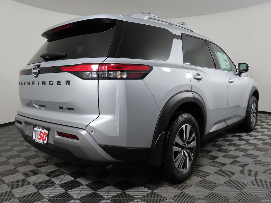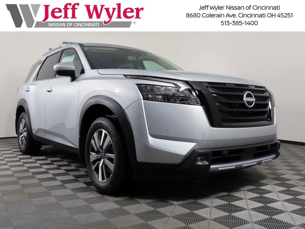 $10,657 off MSRP! Priced below KBB Fair Purchase Price! Brilliant Silver Metallic 2025 Nissan Pathfinder SL 4WD 9-Speed Automatic Jeff Wyler Nissan of Cincinnati is very proud to offer this terrific-looking 2025 Nissan Pathfinder SL in Brilliant Silver Metallic. Well equipped with: Black Appearance Package (Black Grille and Black Liftgate Emblems), 4WD, 3rd row seats: bench, 4-Wheel Disc Brakes, 6 Speakers, ABS brakes, Air Conditioning, Alloy wheels, AM/FM radio: SiriusXM, Auto High-beam Headlights, Auto-dimming Rear-View mirror, Automatic temperature control, Bench Seat Carpeted Floor Mats (set of 4), Brake assist, Bumpers: body-color, Cross Bars, Delay-off headlights, Driver door bin, Driver vanity mirror, Dual front impact airbags, Dual front side impact airbags, Electronic Stability Control, Emergency communication system, Exterior Parking Camera Rear, Four wheel independent suspension, Front anti-roll bar, Front Bucket Seats, Front Center Armrest, Front dual zone A/C, Front reading lights, Fully automatic headlights, Garage door transmitter: HomeLink, Heated door mirrors, Heated Front Bucket Seats, Heated front seats, Heated steering wheel, Illuminated entry, Knee airbag, Leather steering wheel, Leather-Appointed Seating Surfaces, LED Fog Lamps, Low tire pressure warning, Navigation system: NissanConnect with Navigation and Services, NissanConnect featuring Apple CarPlay and Android Auto, NissanConnect with Navigation and Services, Occupant sensing airbag, Outside temperature display, Overhead airbag, Overhead console, Panic alarm, Passenger door bin, Passenger vanity mirror, Power door mirrors, Power driver seat, Power Liftgate, Power passenger seat, Power steering, Power windows, Radio data system, Radio: AM/FM Audio System, Rear air conditioning, Rear anti-roll bar, Rear reading lights, Rear seat center armrest, Rear side impact airbag, Rear window defroster, Rear window wiper, Reclining 3rd row seat, Remote keyless entry, Security system, Speed control, Speed-sensing steering, Split folding rear seat, Spoiler, Steering wheel mounted audio controls, Tachometer, Telescoping steering wheel, Tilt steering wheel, Traction control, Trip computer, Turn signal indicator mirrors, Variably intermittent wipers, and Wheels: 18" x 8J Machined Alloy. 3.5L V6 DOHC 4WD.21/27 City/Highway MPGWyler Family First Package Includes: NanoCure Appearance Protection: Exterior & Interior Chemical Sealant Applied to Protect Against Environmental Hazards (7 Year Warranty Coverage). Pulse- Rear end Collision Avoidance System Theft Deterrent Strategy gives you 5 Years of Coverage against vehicle Theft, Offering up to a $5,000 benefit. Price includes: $5000 - Nissan Customer Cash. Exp. 01/05/2026