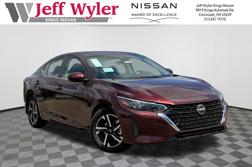 $2,583 off MSRP! Jeff Wyler Kings Nissan is excited to offer this beautiful-looking 2025 Nissan Sentra SV in Rosewood Metallic. Well equipped with: All-Weather Package (Dual Zone Auto Climate Control, Heated Exterior Mirrors, Heated Front Seats, Leather-Wrapped Heated Steering Wheel, and Remote Engine Start), CVT with Xtronic, Charcoal Cloth, 16" Alloy Wheels, 4-Wheel Disc Brakes, 8 Speakers, ABS brakes, Air Conditioning, Alloy wheels, AM/FM radio: SiriusXM, Auto High-beam Headlights, Blind Spot Warning, Body Colored Splash Guards (4-Piece), Brake assist, Bumpers: body-color, Carpeted Floor Mats w/Trunk Mat, Clear Rear Bumper Protector, Delay-off headlights, Door Sill Plates, Driver door bin, Driver vanity mirror, Dual front impact airbags, Dual front side impact airbags, Electronic Stability Control, Four wheel independent suspension, Front anti-roll bar, Front Bucket Seats, Front Center Armrest, Front reading lights, Fully automatic headlights, Illuminated entry, Knee airbag, Low tire pressure warning, NissanConnect featuring Apple CarPlay and Android Auto, Occupant sensing airbag, Outside temperature display, Overhead airbag, Overhead console, Panic alarm, Passenger door bin, Passenger vanity mirror, Power door mirrors, Power steering, Power windows, Radio data system, Radio: AM/FM w/RDS/MP3/Aux-In, Rear anti-roll bar, Rear Parking Sensors, Rear side impact airbag, Rear window defroster, Remote keyless entry, Security system, Speed control, Speed-sensing steering, Split folding rear seat, Steering wheel mounted audio controls, Tachometer, Telescoping steering wheel, Tilt steering wheel, Traction control, Trip computer, Upgraded Cloth Seat Trim, and Variably intermittent wipers. 30/40 City/Highway MPGWyler Family First Package Includes: NanoCure Appearance Protection: Exterior & Interior Chemical Sealant Applied to Protect Against Environmental Hazards (7 Year Warranty Coverage). Pulse- Rear end Collision Avoidance System Theft Deterrent Strategy gives you 5 Years of Coverage against vehicle Theft, Offering up to a $5,000 benefit. Used vehicles 10 years of age or newer with less than 100,000 miles are eligible for the Wyler Assurance Program, but eligible vehicles must pass our reconditioning process and multi-point inspection. Provided the vehicle passes inspection, vehicles will be eligible for the 6 month/6,000 mile limited warranty. The 6 month/6,000 mile limited warranty is NOT available on AS-IS vehicles, wholesale vehicles, lease buyback/pass-thru vehicles or un-inspected vehicles. Note that this program can also apply to vehicles where the remaining factory coverage is less than 6 months or 6,000 miles. Please check the Federal Trade Commission (FTC) Buyers guide on the vehicle for full details as to whether or not warranty coverage may apply. Contact Dealer for additional details. The Wyler Assurance 6 month/6,000 Mile limited warranty ends 6 months from the date of the Retail Purchase Agreement (BUYERS ORDER) or when the vehicle's odometer registers 6,000 additional miles to the mileage listed on the BUYERS ORDER, whichever comes first. Your Deductible - The warranty holder on your contract pays the first $100 of each covered repair. Price includes: $500 - Nissan MY25 Sentra Bonus Cash. Exp. 11/03/2025