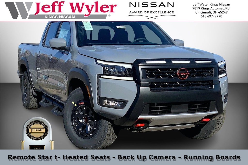 $5,828 off MSRP! Jeff Wyler Kings Nissan is pleased to offer this great 2026 Nissan Frontier PRO-4X in Boulder Gray Pearl. Well equipped with: Black Accent Package, PRO Premium Package (Auto-Dimming Mirror, Auto-Tilt & Slide Sunroof w/Manual Shade, Fender Premium Audio System w/10 Speakers, HomeLink UGDO, Leather Seat Trim, Nissan Door-to-Door Navigation, Partial Under-Seat Storage Delete, and Traffic Sign Recognition (TSR)), PRO-4X Convenience Package (Heated Steering Wheel, Intelligent Around View Monitor (I-AVM), and Wireless Charging for Personal Devices), Tow Package (T11), 4WD, 17" Painted Alloy Wheels, 3.692 Axle Ratio, 4-Wheel Disc Brakes, 6 Speakers, ABS brakes, Air Conditioning, Alloy wheels, AM/FM radio: SiriusXM, Anti-whiplash front head restraints, Auto High-beam Headlights, Automatic temperature control, Blind Spot Warning, Brake assist, Bumpers: body-color, Delay-off headlights, Driver door bin, Driver vanity mirror, Dual front impact airbags, Dual front side impact airbags, Electronic Stability Control, Electronic Tailgate Lock, Emergency communication system, Essentials Kit, Front anti-roll bar, Front Bucket Seats, Front Center Armrest, Front dual zone A/C, Front fog lights, Front reading lights, Front wheel independent suspension, Fully automatic headlights, Grille Accent Lighting, Heated Front Bucket Seats, Heated front seats, Heated steering wheel, Illuminated entry, Knee airbag, Leather steering wheel, Low tire pressure warning, Mud Flaps, Occupant sensing airbag, Off-Road Style Step Rails, Overhead airbag, Overhead console, Panic alarm, Passenger door bin, Passenger vanity mirror, Power door mirrors, Power driver seat, Power passenger seat, Power steering, Power windows, Premium Paint, PRO Embroidered Premium Cloth Seat Trim, PRO-4X Carpeted Floor Mats, Radio data system, Radio: SXM/AM/FM/AUX/USB Audio System, Rear anti-roll bar, Rear seat center armrest, Rear side impact airbag, Rear step bumper, Remote keyless entry, Security system, Speed control, Speed-sensing steering, Split folding rear seat, Steering wheel mounted audio controls, Tachometer, Telescoping steering wheel, Tilt steering wheel, Traction control, Trip computer, Variably intermittent wipers, Voltmeter, and Wireless Apple CarPlay/Wireless Android Auto.Wyler Family First Package Includes: NanoCure Appearance Protection: Exterior & Interior Chemical Sealant Applied to Protect Against Environmental Hazards (7 Year Warranty Coverage). Pulse- Rear end Collision Avoidance System Theft Deterrent Strategy gives you 5 Years of Coverage against vehicle Theft, Offering up to a $5,000 benefit. Used vehicles 10 years of age or newer with less than 100,000 miles are eligible for the Wyler Assurance Program, but eligible vehicles must pass our reconditioning process and multi-point inspection. Provided the vehicle passes inspection, vehicles will be eligible for the 6 month/6,000 mile limited warranty. The 6 month/6,000 mile limited warranty is NOT available on AS-IS vehicles, wholesale vehicles, lease buyback/pass-thru vehicles or un-inspected vehicles. Note that this program can also apply to vehicles where the remaining factory coverage is less than 6 months or 6,000 miles. Please check the Federal Trade Commission (FTC) Buyers guide on the vehicle for full details as to whether or not warranty coverage may apply. Contact Dealer for additional details. The Wyler Assurance 6 month/6,000 Mile limited warranty ends 6 months from the date of the Retail Purchase Agreement (BUYERS ORDER) or when the vehicle's odometer registers 6,000 additional miles to the mileage listed on the BUYERS ORDER, whichever comes first. Your Deductible - The warranty holder on your contract pays the first $100 of each covered repair. Price includes: $1000 - Nissan MWR Frontier (Pro-4X and SV) Bonus Cash - February. Exp. 03/02/2026 $2500 - Nissan Customer Cash. Exp. 03/02/2026