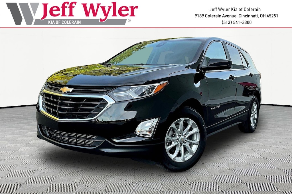 Jeff Wyler Kia of Colerain is honored to offer this charming 2021 Chevrolet Equinox LT in Mosaic Black Metallic. Preferred Equipment Group 1LT, 17" Aluminum Wheels, 2 Rear USB Charging-Only Ports, 2 USB Ports & Auxiliary Input Jack, 2-Way Power Driver Lumbar Control Seat Adjuster, 3.50 Final Drive Axle Ratio, 4-Wheel Disc Brakes, 6 Speaker Audio System Feature, 6 Speakers, 8-Way Power Driver Seat Adjuster, ABS brakes, Air Conditioning, Alloy wheels, AM/FM radio: SiriusXM, Apple CarPlay/Android Auto, Auto High-beam Headlights, Bluetooth® For Phone, Brake assist, Bumpers: body-color, Compass, Delay-off headlights, Driver door bin, Driver vanity mirror, Dual front impact airbags, Dual front side impact airbags, Electronic Stability Control, Emergency communication system: OnStar and Chevrolet connected services capable, Four wheel independent suspension, Front anti-roll bar, Front Bucket Seats, Front Center Armrest, Front Passenger 4-Way Manual Seat Adjuster, Front reading lights, Fully automatic headlights, Heated door mirrors, High-Intensity Discharge Headlights, Illuminated entry, Low tire pressure warning, Occupant sensing airbag, Outside temperature display, Overhead airbag, Overhead console, Panic alarm, Passenger door bin, Passenger vanity mirror, Power door mirrors, Power driver seat, Power steering, Power windows, Premium audio system: Chevrolet Infotainment 3, Premium Cloth Seat Trim, Radio data system, Radio: Chevrolet Infotainment 3 System w/AM/FM, Rear anti-roll bar, Rear reading lights, Rear seat center armrest, Rear window defroster, Rear window wiper, Remote keyless entry, Security system, SiriusXM Radio, Speed control, Speed-sensing steering, Split folding rear seat, Spoiler, Steering wheel mounted audio controls, Tachometer, Telescoping steering wheel, Tilt steering wheel, Traction control, Trip computer, and Variably intermittent wipers Our PRE-OWNED vehicles are put through a rigorous 167- POINT QUALITY ASSURANCE INSPECTION along with an average amount of over $1,400.00 SPENT to recondition each vehicle so we can be sure to deliver you the highest quality vehicle like you deserve! ***ONLINE PRICE DOES NOT INCLUDE WYLER FAMILY FIRST PACKAGE***