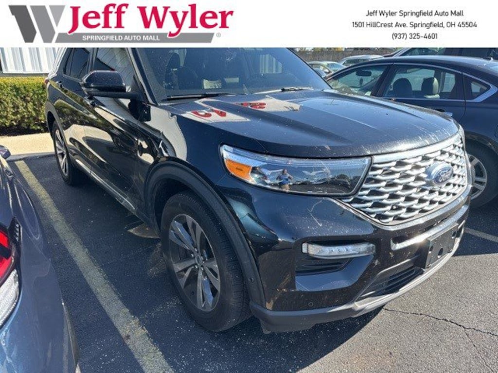 Jeff Wyler Springfield Auto Mall is delighted to offer this good-looking 2020 Ford Explorer Platinum in Black. Well equipped with: Equipment Group 600A, Premium Technology Package (10.1" LCD Capacitive Portrait Touchscreen, 2 Additional Speakers, and Leather Htd/Ventilated Sport Captain's Chairs), 12 Speakers, 3.31 Non-Limited-Slip Axle Ratio, 3rd row seats: bench, 4-Wheel Disc Brakes, ABS brakes, Air Conditioning, Alloy wheels, AM/FM radio: SiriusXM, Auto High-beam Headlights, Auto-dimming door mirrors, Auto-dimming Rear-View mirror, Automatic temperature control, Brake assist, Bumpers: body-color, Compass, Delay-off headlights, Driver door bin, Driver vanity mirror, Dual front impact airbags, Dual front side impact airbags, Electronic Stability Control, Emergency communication system: SYNC 3 911 Assist, Engine Block Heater, Exterior Parking Camera Rear, FordPass Connect, Four wheel independent suspension, Front anti-roll bar, Front Bucket Seats, Front Center Armrest, Front dual zone A/C, Front fog lights, Front reading lights, Fully automatic headlights, Garage door transmitter: HomeLink, Genuine wood dashboard insert, Heated door mirrors, Heated front seats, Heated rear seats, Heated steering wheel, Illuminated entry, Knee airbag, Leather steering wheel, Low tire pressure warning, Memory seat, Navigation System, Occupant sensing airbag, Outside temperature display, Overhead airbag, Overhead console, Panic alarm, Passenger door bin, Passenger vanity mirror, Power door mirrors, Power driver seat, Power Liftgate, Power moonroof, Power passenger seat, Power steering, Power windows, Radio data system, Radio: B&O Sound System by Bang & Olufsen, Rain sensing wipers, Rear air conditioning, Rear anti-roll bar, Rear reading lights, Rear window defroster, Rear window wiper, Remote keyless entry, Roof rack: rails only, Security system, Speed control, Speed-sensing steering, Speed-Sensitive Wipers, Split folding rear seat, Spoiler, Steering wheel memory, Steering wheel mounted audio controls, SYNC 3 Communications & Entertainment System, SYNC 3/Apple CarPlay/Android Auto, Tachometer, Telescoping steering wheel, Tilt steering wheel, Traction control, Trip computer, Turn signal indicator mirrors, Variably intermittent wipers, Ventilated front seats, Voice-Activated Touchscreen Navigation System, and Wheels: 20" Bright Machined-Face Aluminum. Awards: * 2020 KBB.com 10 Best SUVs Worth Waiting For * 2020 KBB.com 10 Favorite New-for-2020 Cars Ask about available certifications. Used vehicles 10 years of age or newer with less than 100,000 miles are eligible for the Wyler Assurance Program, but eligible vehicles must pass our reconditioning process and multi-point inspection. Provided the vehicle passes inspection, vehicles will be eligible for the 6 month/6,000 mile limited warranty. The 6 month/6,000 mile limited warranty is NOT available on AS-IS vehicles, wholesale vehicles, lease buyback/pass-thru vehicles or un-inspected vehicles. Note that this program can also apply to vehicles where the remaining factory coverage is less than 6 months or 6,000 miles. Please check the Federal Trade Commission (FTC) Buyers guide on the vehicle for full details as to whether or not warranty coverage may apply. Contact Dealer for additional details. The Wyler Assurance 6 month/6,000 Mile limited warranty ends 6 months from the date of the Retail Purchase Agreement (BUYERS ORDER) or when the vehicle's odometer registers 6,000 additional miles to the mileage listed on the BUYERS ORDER, whichever comes first. Your Deductible - The warranty holder on your contract pays the first $100 of each covered repair.