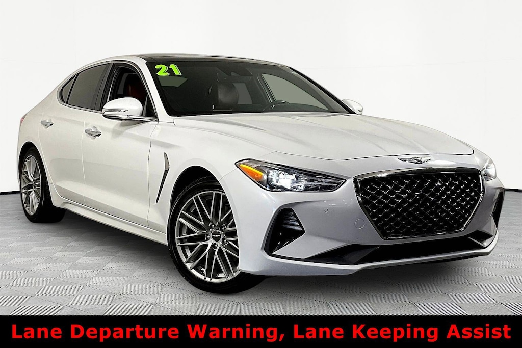 Delivers 27 Highway MPG and 20 City MPG! This Genesis G70 boasts a Intercooled Turbo Premium Unleaded I-4 2.0 L/122 engine powering this Automatic transmission. UYUNI WHITE, REVERSIBLE CARGO TRAY, REAR BUMPER APPLIQUE.