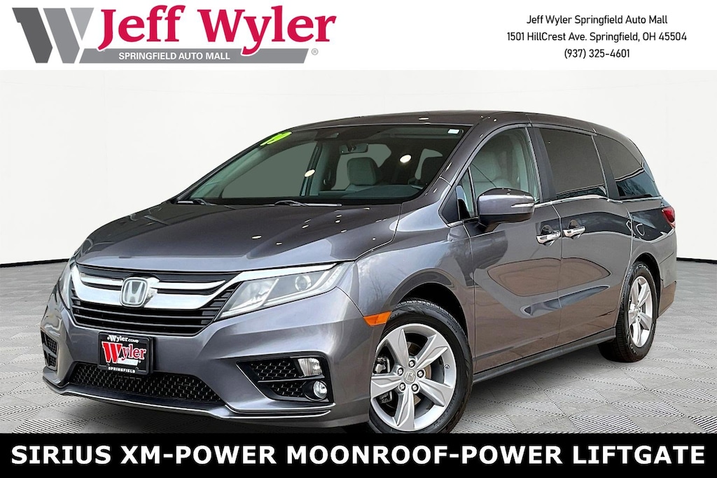 Jeff Wyler Springfield Auto Mall is delighted to offer this beautiful 2019 Honda Odyssey EX-L in Gray. Well equipped with: 3rd row seats: split-bench, 4-Wheel Disc Brakes, 4.33 Axle Ratio, 7 Speakers, A/V remote: CabinControl, ABS brakes, Air Conditioning, Alloy wheels, AM/FM radio: SiriusXM, Anti-whiplash front head restraints, Apple CarPlay/Android Auto, Auto High-beam Headlights, Auto-dimming Rear-View mirror, Automatic temperature control, Blind Spot Information (BSI) System warning, Brake assist, Bumpers: body-color, Delay-off headlights, Driver door bin, Driver vanity mirror, Driver's Seat Mounted Armrest, Dual front impact airbags, Dual front side impact airbags, Electronic Stability Control, Emergency communication system: HondaLink, Exterior Parking Camera Rear, Forward collision: Collision Mitigation Braking System (CMBS) + FCW mitigation, Four wheel independent suspension, Front anti-roll bar, Front Bucket Seats, Front dual zone A/C, Front fog lights, Front reading lights, Fully automatic headlights, Garage door transmitter: HomeLink, Heated door mirrors, Heated Front Bucket Seats, Heated front seats, Illuminated entry, Knee airbag, Lane departure: Lane Keeping Assist System (LKAS) active, Leather Seat Trim, Leather steering wheel, Low tire pressure warning, Memory seat, Occupant sensing airbag, Outside temperature display, Overhead airbag, Overhead console, Panic alarm, Passenger door bin, Passenger seat mounted armrest, Passenger vanity mirror, Power door mirrors, Power driver seat, Power Liftgate, Power moonroof, Power passenger seat, Power steering, Power windows, Radio data system, Radio: 160-Watt AM/FM/HD/SiriusXM Audio System, Rear air conditioning, Rear anti-roll bar, Rear reading lights, Rear seat center armrest, Rear window defroster, Rear window wiper, Reclining 3rd row seat, Remote keyless entry, Security system, Speed control, Speed-sensing steering, Speed-Sensitive Wipers, Split folding rear seat, Spoiler, Steering wheel mounted audio controls, Tachometer, Telescoping steering wheel, Tilt steering wheel, Traction control, Trip computer, Turn signal indicator mirrors, Variably intermittent wipers, and Wheels: 18" Dark Silver-Painted Alloy. Ask about available certifications. Used vehicles 10 years of age or newer with less than 100,000 miles are eligible for the Wyler Assurance Program, but eligible vehicles must pass our reconditioning process and multi-point inspection. Provided the vehicle passes inspection, vehicles will be eligible for the 6 month/6,000 mile limited warranty. The 6 month/6,000 mile limited warranty is NOT available on AS-IS vehicles, wholesale vehicles, lease buyback/pass-thru vehicles or un-inspected vehicles. Note that this program can also apply to vehicles where the remaining factory coverage is less than 6 months or 6,000 miles. Please check the Federal Trade Commission (FTC) Buyers guide on the vehicle for full details as to whether or not warranty coverage may apply. Contact Dealer for additional details. The Wyler Assurance 6 month/6,000 Mile limited warranty ends 6 months from the date of the Retail Purchase Agreement (BUYERS ORDER) or when the vehicle's odometer registers 6,000 additional miles to the mileage listed on the BUYERS ORDER, whichever comes first. Your Deductible - The warranty holder on your contract pays the first $100 of each covered repair.