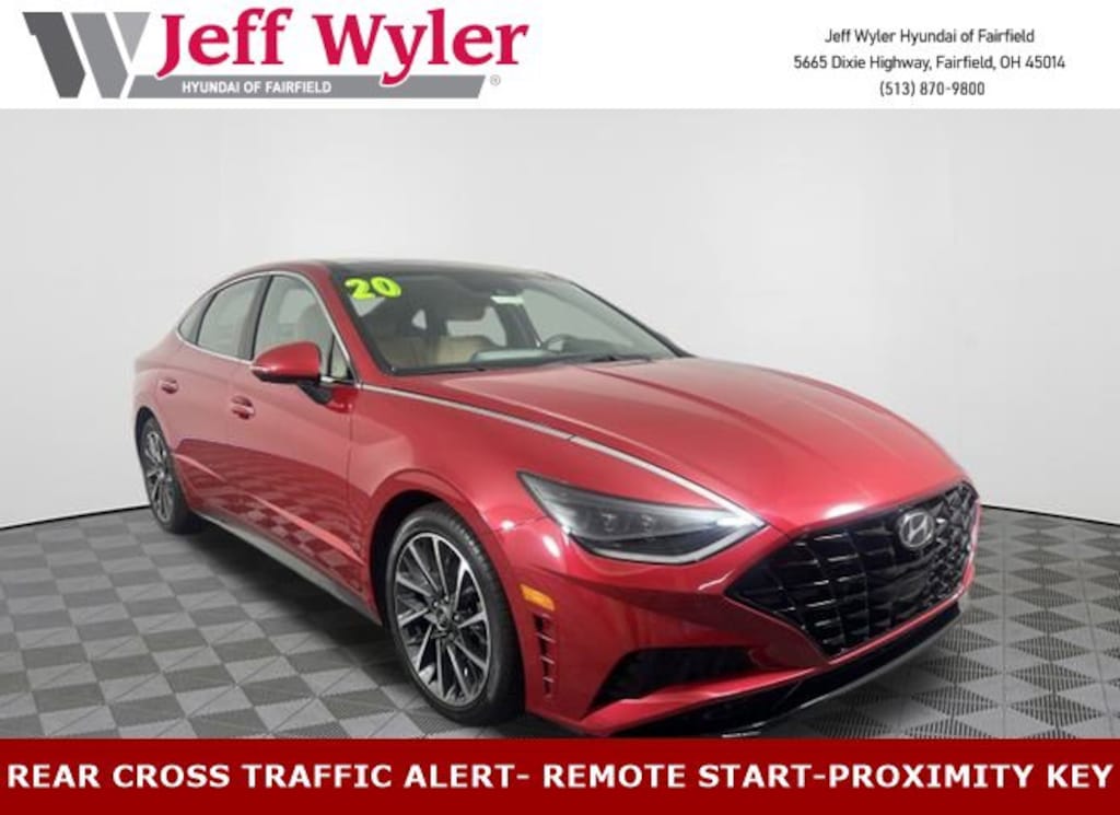CARFAX One-Owner. Jeff Wyler Hyundai of Fairfield is pleased to offer this good-looking 2020 Hyundai Sonata Limited in Calypso Red. Well equipped with: Blue Link Connected Care & Remote Package, Option Group 01, Dark Gray/Camel Leather, Android Auto, Apple CarPlay, CALL NOW FOR YOUR VIP APPOINTMENT 513-870-9800, FULLY SERVICED w/RECORDS, GUARANTEED FINANCING!! NO MATTER YOUR SITUATION WE CAN GET AN APPROVAL!!, THE #1 Volume dealer in the region! Come see why for yourself Today!!, WE PAY MORE FOR YOUR TRADE!!, 12 Speakers, 4-Wheel Disc Brakes, ABS brakes, Air Conditioning, Alloy wheels, AM/FM radio: SiriusXM, Apple CarPlay & Android Auto, Auto High-beam Headlights, Auto-dimming Rear-View mirror, Automatic temperature control, Bose Premium Audio, Brake assist, Bumpers: body-color, Carpeted Floor Mats, Delay-off headlights, Driver door bin, Driver vanity mirror, Dual front impact airbags, Dual front side impact airbags, Electronic Stability Control, Emergency communication system: Blue Link Connected Care (3-year subscription), Four wheel independent suspension, Front anti-roll bar, Front Bucket Seats, Front Center Armrest, Front dual zone A/C, Front reading lights, Fully automatic headlights, Garage door transmitter: HomeLink, Heads-Up Display, Heated door mirrors, Heated front seats, Heated steering wheel, Heated/Ventilated Front Bucket Seats, Illuminated entry, Knee airbag, Leather Seating Surfaces, Low tire pressure warning, Memory seat, Navigation System, Occupant sensing airbag, Outside temperature display, Overhead airbag, Overhead console, Panic alarm, Passenger door bin, Passenger vanity mirror, Power door mirrors, Power driver seat, Power moonroof, Power passenger seat, Power steering, Power windows, Radio data system, Radio: AM/FM/MP3/HD/SiriusXM Display Audio w/Nav, Rain sensing wipers, Rear anti-roll bar, Rear Bumper Applique, Rear seat center armrest, Rear side impact airbag, Rear window defroster, Remote keyless entry, Security system, Speed control, Speed-sensing steering, Speed-Sensitive Wipers, Split folding rear seat, Steering wheel mounted audio controls, Tachometer, Telescoping steering wheel, Tilt steering wheel, Traction control, Trip computer, Turn signal indicator mirrors, Variably intermittent wipers, Ventilated front seats, Wheel Locks, Wheels: 18 x 7.5J Machine/Argent Finish Alum Alloy, and Wireless Phone Charging. TO CHECK ON THE AVAILABILITY OF THIS VEHICLE REACH OUT TO ONE OF OUR TEAM MEMBERS!! ALSO SHOP ONLINE AT https://www.jeffwylerhyundaioffairfield.com/ Proudly Serving: Cincinnati, Dayton, Columbus, Louisville, Lexington, Indianapolis, Hamilton, Florence, Alexandria, Beavercreek, Springdale, West Chester, Monroe, Fairfield, Kenwood, Newport and all of greater Cincinnati Ohio, Indiana, and Northern Kentucky.