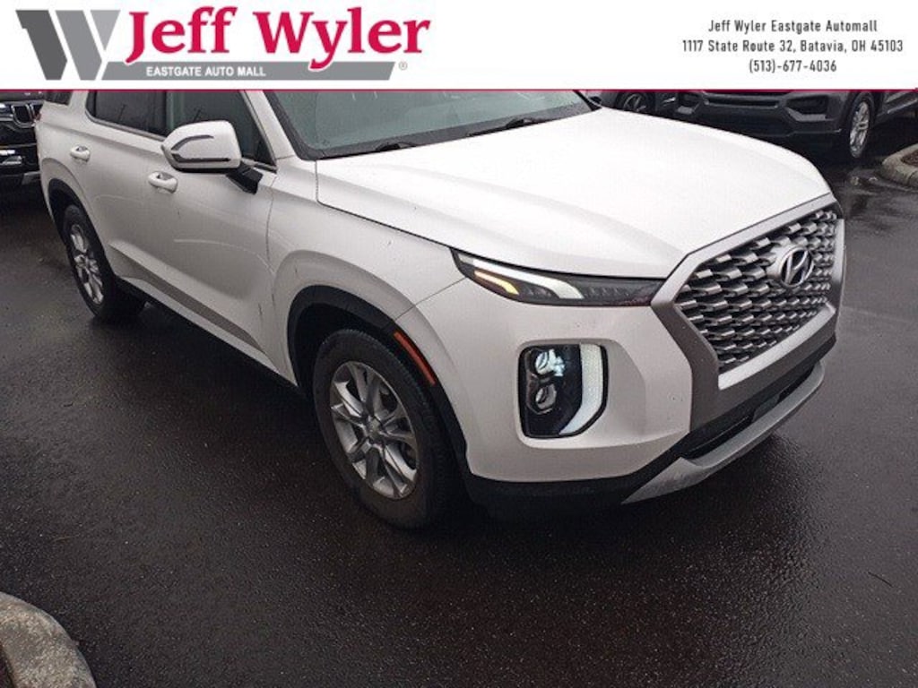 Jeff Wyler Eastgate Auto Mall is pleased to offer this gorgeous 2022 Hyundai Palisade SE in Hyper White. Well equipped with: Option Group 01, 3.648 Axle Ratio, 3rd row seats: split-bench, 4-Wheel Disc Brakes, 6 Speakers, ABS brakes, Air Conditioning, Alloy wheels, AM/FM radio, Apple CarPlay & Android Auto, Auto High-beam Headlights, Brake assist, Bumpers: body-color, Cargo Cover/Screen, Cargo Net, Cargo Tray, Carpeted Floor Mats, Cloth Seat Trim, Delay-off headlights, Driver door bin, Driver vanity mirror, Dual front impact airbags, Dual front side impact airbags, Electronic Stability Control, First Aid Kit, Four wheel independent suspension, Front anti-roll bar, Front Bucket Seats, Front Center Armrest, Front reading lights, Fully automatic headlights, Heated door mirrors, Illuminated entry, Knee airbag, Low tire pressure warning, Occupant sensing airbag, Outside temperature display, Overhead airbag, Overhead console, Panic alarm, Passenger door bin, Passenger vanity mirror, Power door mirrors, Power steering, Power windows, Radio data system, Radio: AM/FM/MP3 Display Audio, Rear air conditioning, Rear anti-roll bar, Rear audio controls, Rear reading lights, Rear seat center armrest, Rear window defroster, Rear window wiper, Reclining 3rd row seat, Remote keyless entry, Security system, Speed control, Speed-sensing steering, Split folding rear seat, Spoiler, Steering wheel mounted audio controls, Tachometer, Telescoping steering wheel, Tilt steering wheel, Traction control, Trip computer, Turn signal indicator mirrors, Variably intermittent wipers, Wheel Locks, and Wheels: 18" x 7.5J Painted Finish Alloy. Ask about available certifications. Used vehicles 10 years of age or newer with less than 100,000 miles are eligible for the Wyler Assurance Program, but eligible vehicles must pass our reconditioning process and multi-point inspection. Provided the vehicle passes inspection, vehicles will be eligible for the 6 month/6,000 mile limited warranty. The 6 month/6,000 mile limited warranty is NOT available on AS-IS vehicles, wholesale vehicles, lease buyback/pass-thru vehicles or un-inspected vehicles. Note that this program can also apply to vehicles where the remaining factory coverage is less than 6 months or 6,000 miles. Please check the Federal Trade Commission (FTC) Buyers guide on the vehicle for full details as to whether or not warranty coverage may apply. Contact Dealer for additional details. The Wyler Assurance 6 month/6,000 Mile limited warranty ends 6 months from the date of the Retail Purchase Agreement (BUYERS ORDER) or when the vehicle's odometer registers 6,000 additional miles to the mileage listed on the BUYERS ORDER, whichever comes first. Your Deductible - The warranty holder on your contract pays the first $100 of each covered repair.
