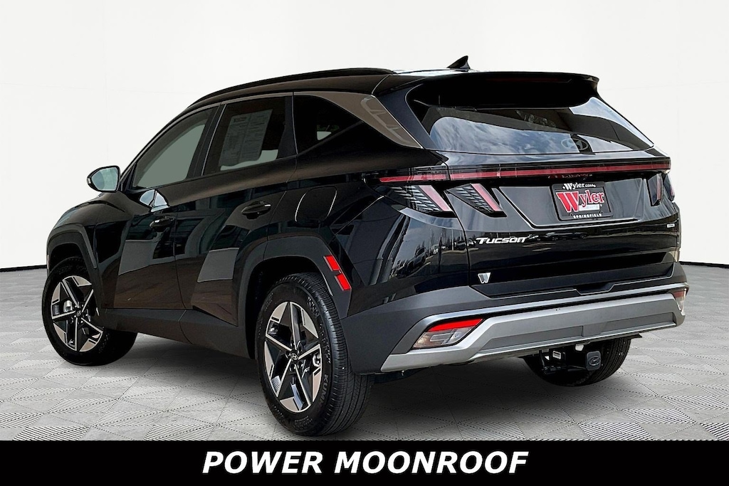 Jeff Wyler Springfield Auto Mall is delighted to offer this charming 2025 Hyundai Tucson SEL Convenience in Phantom Black. Well equipped with: Option Group 01, 18" Alloy Wheels, 4-Wheel Disc Brakes, 6 Speakers, ABS brakes, Air Conditioning, Alloy wheels, AM/FM radio: SiriusXM, Apple CarPlay & Android Auto, Auto High-beam Headlights, Auto-dimming Rear-View mirror, Automatic temperature control, Brake assist, Bumpers: body-color, Cargo Tray, Carpeted Floor Mats, Delay-off headlights, Driver door bin, Driver vanity mirror, Dual front impact airbags, Dual front side impact airbags, Electronic Stability Control, Emergency communication system: Bluelink+, First Aid Kit, Four wheel independent suspension, Front anti-roll bar, Front Bucket Seats, Front Center Armrest, Front dual zone A/C, Front reading lights, Fully automatic headlights, H-Tex Seat Trim, Heated door mirrors, Heated Front Bucket Seats, Heated front seats, Illuminated entry, Leather steering wheel, Low tire pressure warning, Navigation System, Occupant sensing airbag, Outside temperature display, Overhead airbag, Overhead console, Panic alarm, Passenger door bin, Passenger vanity mirror, Power door mirrors, Power driver seat, Power Liftgate, Power moonroof, Power steering, Power windows, Radio data system, Radio: AM/FM/HD Audio System, Rear anti-roll bar, Rear reading lights, Rear seat center armrest, Rear side impact airbag, Rear window defroster, Rear window wiper, Remote keyless entry, Security system, Speed control, Split folding rear seat, Spoiler, Steering wheel mounted audio controls, Tachometer, Telescoping steering wheel, Tilt steering wheel, Tow Hitch, Traction control, Trip computer, Turn signal indicator mirrors, and Variably intermittent wipers. Ask about available certifications. Used vehicles 10 years of age or newer with less than 100,000 miles are eligible for the Wyler Assurance Program, but eligible vehicles must pass our reconditioning process and multi-point inspection. Provided the vehicle passes inspection, vehicles will be eligible for the 6 month/6,000 mile limited warranty. The 6 month/6,000 mile limited warranty is NOT available on AS-IS vehicles, wholesale vehicles, lease buyback/pass-thru vehicles or un-inspected vehicles. Note that this program can also apply to vehicles where the remaining factory coverage is less than 6 months or 6,000 miles. Please check the Federal Trade Commission (FTC) Buyers guide on the vehicle for full details as to whether or not warranty coverage may apply. Contact Dealer for additional details. The Wyler Assurance 6 month/6,000 Mile limited warranty ends 6 months from the date of the Retail Purchase Agreement (BUYERS ORDER) or when the vehicle's odometer registers 6,000 additional miles to the mileage listed on the BUYERS ORDER, whichever comes first. Your Deductible - The warranty holder on your contract pays the first $100 of each covered repair.