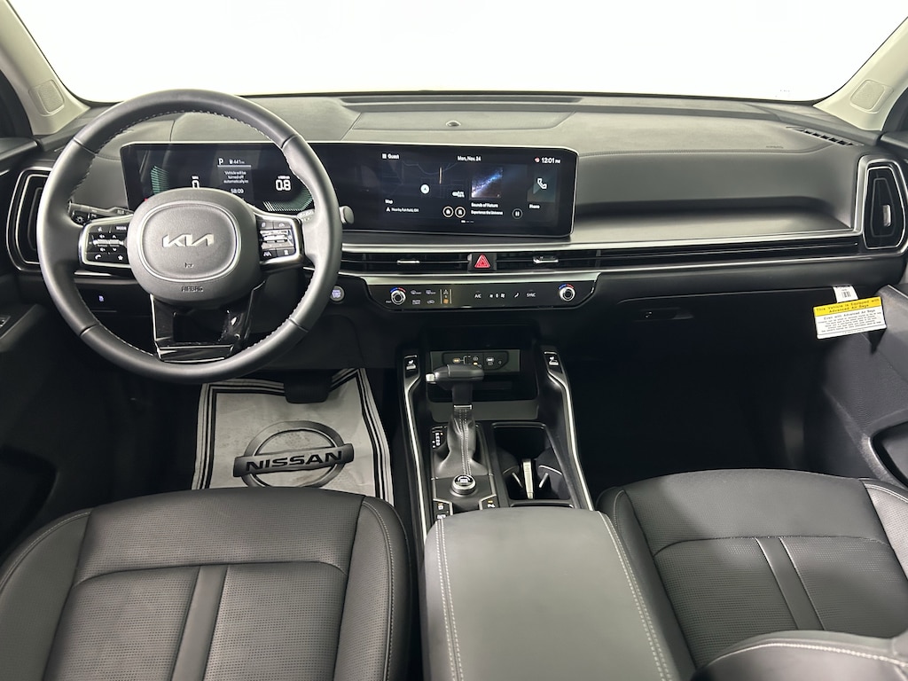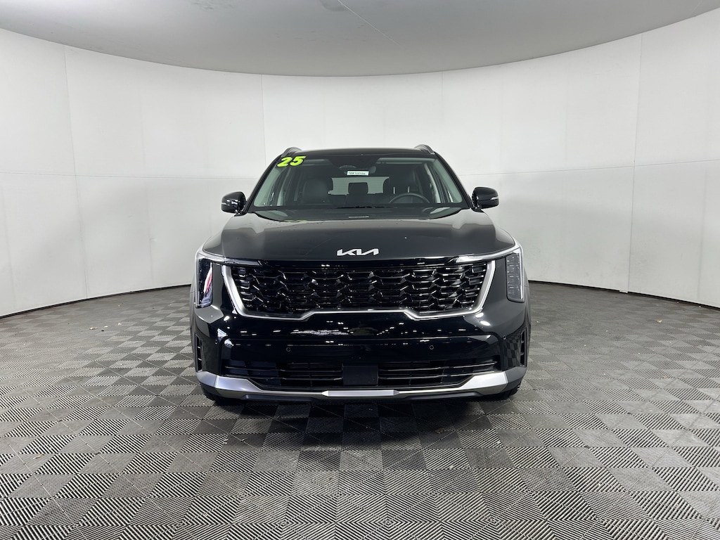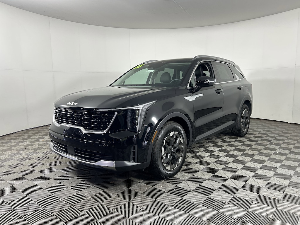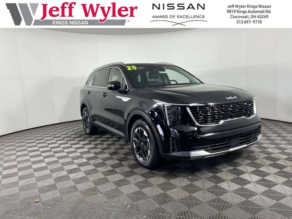 Jeff Wyler Kings Nissan is proud to offer this gorgeous 2025 Kia Sorento S in Ebony Black. Well equipped with: Panoramic Sunroof Package (LED Interior Lighting and Panoramic Power Sunroof w/Power Sunshade), 3rd row seats: split-bench, 4-Wheel Disc Brakes, 6 Speakers, ABS brakes, Air Conditioning, Alloy wheels, AM/FM radio: SiriusXM, Apple CarPlay & Android Auto, Auto High-beam Headlights, Automatic temperature control, Brake assist, Bumpers: body-color, Carpeted Floor Mats, Delay-off headlights, Driver door bin, Driver vanity mirror, Dual front impact airbags, Dual front side impact airbags, Electronic Stability Control, Emergency communication system: 911 Connect, Exterior Parking Camera Rear, Four wheel independent suspension, Front anti-roll bar, Front Bucket Seats, Front Center Armrest, Front dual zone A/C, Front reading lights, Fully automatic headlights, Heated door mirrors, Heated Front Bucket Seats, Heated front seats, Illuminated entry, Knee airbag, Leather Shift Knob, Leather steering wheel, Low tire pressure warning, Navigation System, Occupant sensing airbag, Outside temperature display, Overhead airbag, Overhead console, Panic alarm, Passenger door bin, Passenger vanity mirror, Power door mirrors, Power driver seat, Power steering, Power windows, Radio data system, Radio: AM/FM Standard Sound System, Rear anti-roll bar, Rear reading lights, Rear seat center armrest, Rear side impact airbag, Rear window defroster, Rear window wiper, Remote keyless entry, Security system, Speed control, Speed-sensing steering, Split folding rear seat, Spoiler, Steering wheel mounted audio controls, SynTex Artificial Leather Seat Trim, Tachometer, Telescoping steering wheel, Tilt steering wheel, Traction control, Trip computer, Turn signal indicator mirrors, Variably intermittent wipers, and Wheels: 18" Gloss Black Alloy.Ask about available certifications.