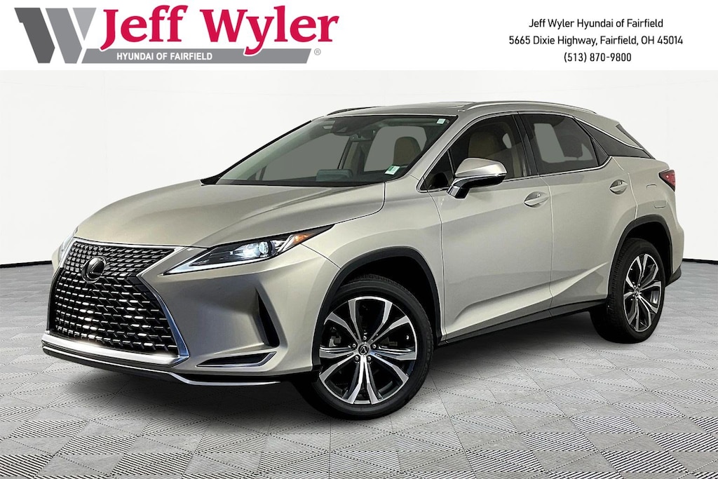 CARFAX One-Owner. Jeff Wyler Hyundai of Fairfield is pumped up to offer this charming 2021 Lexus RX 350 in Atomic Silver. Well equipped with: Birch w/Semi-Aniline Leather Seat Trim, Android Auto, Apple CarPlay, CALL NOW FOR YOUR VIP APPOINTMENT 513-870-9800, FULLY SERVICED w/RECORDS, GUARANTEED FINANCING!! NO MATTER YOUR SITUATION WE CAN GET AN APPROVAL!!, THE #1 Volume dealer in the region! Come see why for yourself Today!!, WE PAY MORE FOR YOUR TRADE!!, 18" Aluminum Wheels, 3.329 Axle Ratio, 4-Wheel Disc Brakes, 9 Speakers, ABS brakes, Air Conditioning, Alloy wheels, AM/FM radio: SiriusXM, AM/FM/CD Radio, Anti-whiplash front head restraints, Apple CarPlay/Android Auto, Auto High-beam Headlights, Auto-dimming Rear-View mirror, Automatic temperature control, Brake assist, Bumpers: body-color, CD player, Compass, Delay-off headlights, Driver door bin, Driver vanity mirror, Dual front impact airbags, Dual front side impact airbags, Electronic Stability Control, Emergency communication system, Exterior Parking Camera Rear, Four wheel independent suspension, Front anti-roll bar, Front Bucket Seats, Front Center Armrest, Front dual zone A/C, Front reading lights, Fully automatic headlights, Garage door transmitter: HomeLink, Genuine wood console insert, Genuine wood door panel insert, Heated door mirrors, Illuminated entry, Knee airbag, Leather Shift Knob, Leather steering wheel, Low tire pressure warning, NuLuxe Seat Trim, Occupant sensing airbag, Outside temperature display, Overhead airbag, Overhead console, Panic alarm, Passenger door bin, Passenger vanity mirror, Power door mirrors, Power driver seat, Power Liftgate, Power passenger seat, Power steering, Power windows, Radio data system, Rain sensing wipers, Rear anti-roll bar, Rear reading lights, Rear seat center armrest, Rear side impact airbag, Rear window defroster, Rear window wiper, Remote keyless entry, Security system, Speed control, Speed-sensing steering, Split folding rear seat, Spoiler, Steering wheel mounted audio controls, Tachometer, Telescoping steering wheel, Tilt steering wheel, Traction control, Trip computer, Turn signal indicator mirrors, and Variably intermittent wipers. TO CHECK ON THE AVAILABILITY OF THIS VEHICLE REACH OUT TO ONE OF OUR TEAM MEMBERS!! ALSO SHOP ONLINE AT https://www.jeffwylerhyundaioffairfield.com/ Proudly Serving: Cincinnati, Dayton, Columbus, Louisville, Lexington, Indianapolis, Hamilton, Florence, Alexandria, Beavercreek, Springdale, West Chester, Monroe, Fairfield, Kenwood, Newport and all of greater Cincinnati Ohio, Indiana, and Northern Kentucky.
