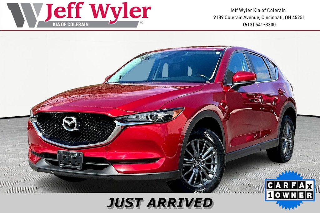 Jeff Wyler Kia of Colerain is delighted to offer this gorgeous-looking 2017 Mazda CX-5 Touring in Soul Red Crystal Metallic. Preferred Equipment Package (Auto Dimming Rearview Mirror w/HomeLink, Automatic On/Off Headlights, Automatic Rain Sensing Front Windshield Wipers, Bose 10-Speaker Audio Sound System, Mazda Navigation System, Power Rear Liftgate, and Power Sliding-Glass Moonroof w/Interior Sunshade), 17 x 7J Aluminum Alloy Wheels, 4-Wheel Disc Brakes, 4.62 Axle Ratio, 6 Speakers, ABS brakes, Air Conditioning, Alloy wheels, AM/FM radio, Automatic temperature control, Brake assist, Bumpers: body-color, Delay-off headlights, Driver door bin, Driver vanity mirror, Dual front impact airbags, Dual front side impact airbags, Electronic Stability Control, Emergency communication system, Exterior Parking Camera Rear, Four wheel independent suspension, Front anti-roll bar, Front Bucket Seats, Front Center Armrest, Front dual zone A/C, Front reading lights, Heated front seats, Illuminated entry, Leather Shift Knob, Leatherette Seat Trim, Low tire pressure warning, Occupant sensing airbag, Outside temperature display, Overhead airbag, Overhead console, Panic alarm, Passenger door bin, Passenger vanity mirror, Power door mirrors, Power driver seat, Power steering, Power windows, Radio data system, Radio: AM/FM/HD Audio System w/6 Speakers, Rear anti-roll bar, Rear reading lights, Rear seat center armrest, Rear window defroster, Rear window wiper, Remote keyless entry, Soul Red Crystal Metallic Paint, Speed control, Speed-sensing steering, Split folding rear seat, Spoiler, Sport Shape Front Seats, Steering wheel mounted audio controls, Tachometer, Telescoping steering wheel, Tilt steering wheel, Traction control, Trip computer, Turn signal indicator mirrors, Variably intermittent wipers, and Wheel Locks Our PRE-OWNED vehicles are put through a rigorous 167- POINT QUALITY ASSURANCE INSPECTION along with an average amount of over $1,400.00 SPENT to recondition each vehicle so we can be sure to deliver you the highest quality vehicle like you deserve! ***ONLINE PRICE DOES NOT INCLUDE WYLER FAMILY FIRST PACKAGE***
