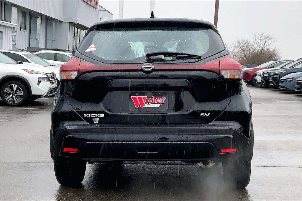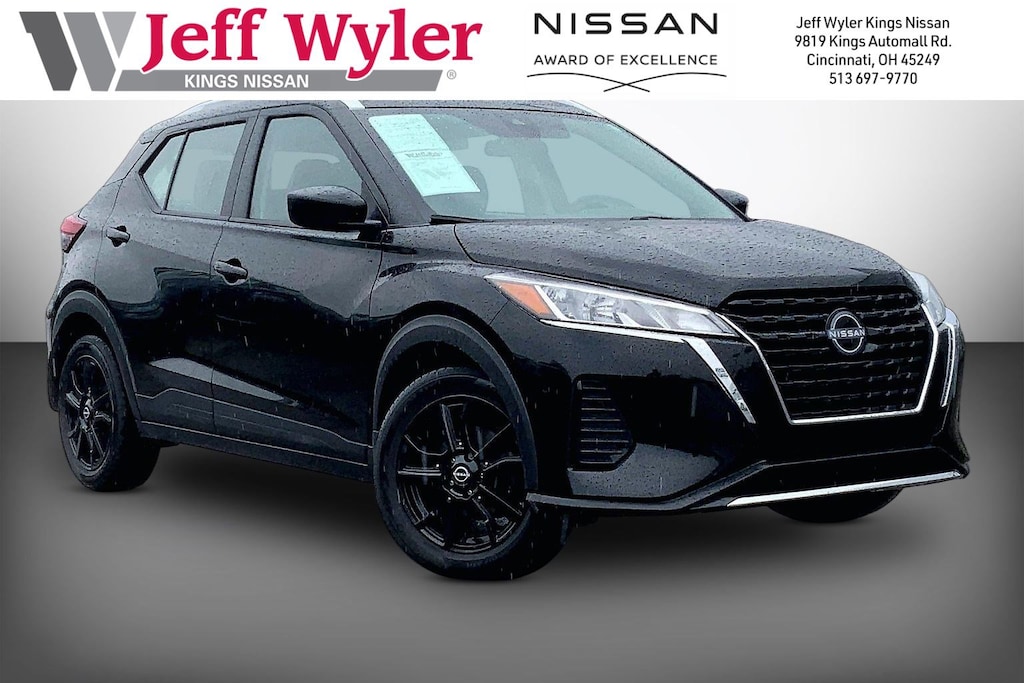Jeff Wyler Kings Nissan is proud to offer this handsome 2023 Nissan Kicks SV in Super Black. Well equipped with: 17" Alloy Wheels, 3.93 Axle Ratio, 4-Wheel Disc Brakes, 6 Speakers, ABS brakes, Air Conditioning, Alloy wheels, AM/FM radio: SiriusXM, Apple CarPlay/Android Auto, Auto High-beam Headlights, Blind Spot Warning, Brake assist, Bumpers: body-color, Carpeted Floor Mats w/Cargo Mat, Cloth Seat Trim, Driver door bin, Driver vanity mirror, Dual front impact airbags, Dual front side impact airbags, Electronic Stability Control, Front anti-roll bar, Front Bucket Seats, Front Center Armrest, Front reading lights, Front wheel independent suspension, Fully automatic headlights, Heated door mirrors, Illuminated entry, Knee airbag, Low tire pressure warning, Occupant sensing airbag, Outside temperature display, Overhead airbag, Panic alarm, Passenger door bin, Passenger vanity mirror, Power door mirrors, Power steering, Power windows, Radio data system, Radio: AM/FM Audio System, Rear Parking Sensors, Rear reading lights, Rear side impact airbag, Rear window defroster, Rear window wiper, Remote keyless entry, Speed control, Splash Guards Grain (4 Piece), Split folding rear seat, Sport steering wheel, Steering wheel mounted audio controls, Tachometer, Telescoping steering wheel, Tilt steering wheel, Traction control, Trip computer, Variably intermittent wipers, and Wheels: 17" Black Alloy.Ask about available certifications.