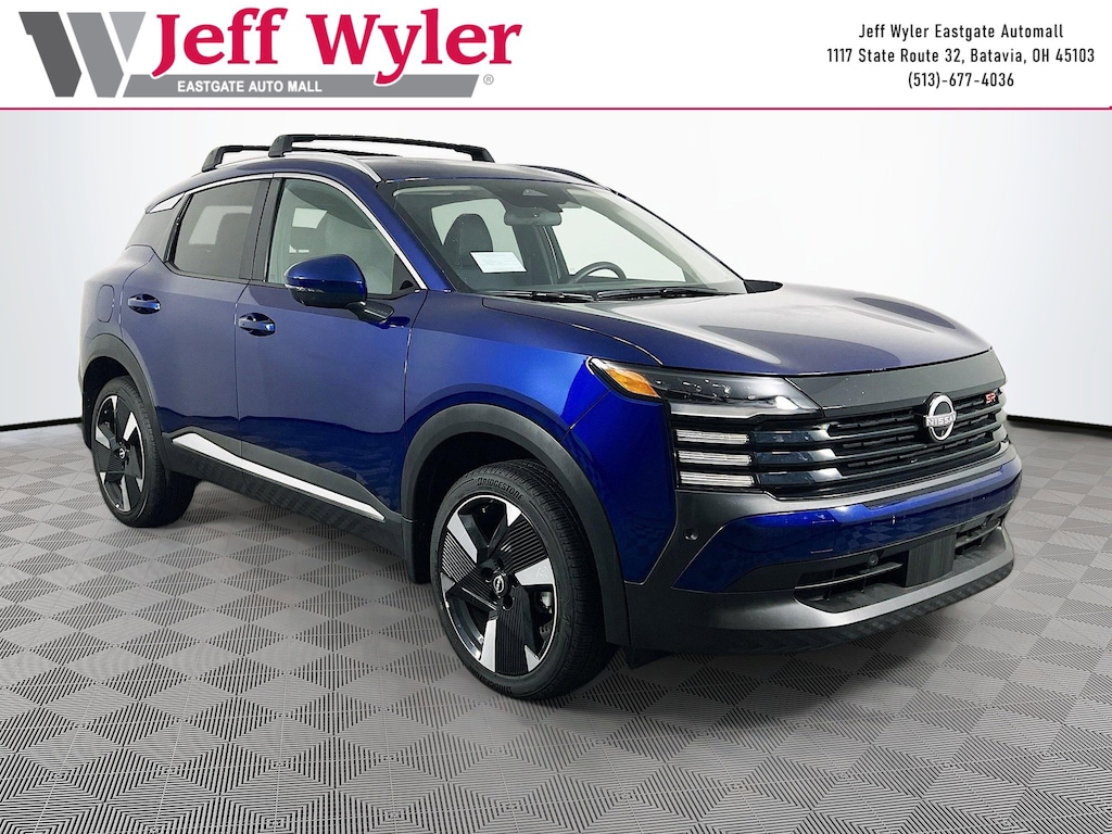 Jeff Wyler Eastgate Auto Mall is honored to offer this superb 2025 Nissan Kicks SR in Deep Blue Pearl. Well equipped with: 17" Alloy Wheels, 19" Alloy Wheels, 4-Wheel Disc Brakes, 6 Speakers, ABS brakes, Air Conditioning, Alloy wheels, AM/FM radio: Sirius, Auto High-beam Headlights, Automatic temperature control, Brake assist, Bumpers: body-color, Carpeted Floor Mats & Underfloor Protector, Crossbars, Delay-off headlights, Door Trim Panel Scuff Plates, Driver door bin, Driver vanity mirror, Dual front impact airbags, Dual front side impact airbags, Electronic Stability Control, Front anti-roll bar, Front Bucket Seats, Front Center Armrest, Front reading lights, Front wheel independent suspension, Fully automatic headlights, Illuminated entry, Knee airbag, Leather Shift Knob, Leather steering wheel, Low tire pressure warning, Occupant sensing airbag, Outside temperature display, Overhead airbag, Overhead console, Panic alarm, Passenger door bin, Passenger vanity mirror, Power door mirrors, Power steering, Power windows, Radio data system, Radio: AM/FM Audio System, Rear anti-roll bar, Rear reading lights, Rear seat center armrest, Rear side impact airbag, Rear window defroster, Rear window wiper, Remote keyless entry, Security system, Speed control, Speed-sensing steering, Splash Guards, Split folding rear seat, Spoiler, Sport Cloth/Leatherette Seat Trim, Sport steering wheel, Steering wheel mounted audio controls, Tachometer, Telescoping steering wheel, Tilt steering wheel, Traction control, Trip computer, Turn signal indicator mirrors, Variably intermittent wipers, and Wireless Apple CarPlay/Wireless Android Auto. Clean CARFAX. Ask about available certifications. Used vehicles 10 years of age or newer with less than 100,000 miles are eligible for the Wyler Assurance Program, but eligible vehicles must pass our reconditioning process and multi-point inspection. Provided the vehicle passes inspection, vehicles will be eligible for the 6 month/6,000 mile limited warranty. The 6 month/6,000 mile limited warranty is NOT available on AS-IS vehicles, wholesale vehicles, lease buyback/pass-thru vehicles or un-inspected vehicles. Note that this program can also apply to vehicles where the remaining factory coverage is less than 6 months or 6,000 miles. Please check the Federal Trade Commission (FTC) Buyers guide on the vehicle for full details as to whether or not warranty coverage may apply. Contact Dealer for additional details. The Wyler Assurance 6 month/6,000 Mile limited warranty ends 6 months from the date of the Retail Purchase Agreement (BUYERS ORDER) or when the vehicle's odometer registers 6,000 additional miles to the mileage listed on the BUYERS ORDER, whichever comes first. Your Deductible - The warranty holder on your contract pays the first $100 of each covered repair.