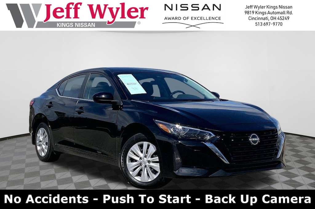 Jeff Wyler Kings Nissan is proud to offer this handsome-looking 2025 Nissan Sentra S in Super Black. Well equipped with: CVT with Xtronic, Charcoal Cloth, 4 Speakers, ABS brakes, Air Conditioning, AM/FM radio, Auto High-beam Headlights, Blind Spot Warning, Body Colored Splash Guards (4-Piece), Brake assist, Bumpers: body-color, Carpeted Floor Mats with Trunk Mat, Cloth Seat Trim, Delay-off headlights, Driver door bin, Driver vanity mirror, Dual front impact airbags, Dual front side impact airbags, Electronic Stability Control, Four wheel independent suspension, Front anti-roll bar, Front Bucket Seats, Front Center Armrest, Front reading lights, Fully automatic headlights, Illuminated entry, Knee airbag, Low tire pressure warning, NissanConnect featuring Apple CarPlay and Android Auto, Occupant sensing airbag, Outside temperature display, Overhead airbag, Overhead console, Panic alarm, Passenger door bin, Passenger vanity mirror, Power door mirrors, Power steering, Power windows, Radio data system, Radio: AM/FM with RDS/MP3/Aux-in, Rear anti-roll bar, Rear Parking Sensors, Rear side impact airbag, Rear window defroster, Remote keyless entry, Speed control, Speed-sensing steering, Split folding rear seat, Steering wheel mounted audio controls, Tachometer, Telescoping steering wheel, Tilt steering wheel, Traction control, Trip computer, Variably intermittent wipers, and Wheels: 16" Steel with Full Covers.