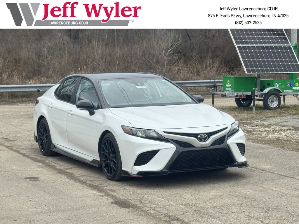 Jeff Wyler Chrysler Dodge Jeep of Lawrenceburg is pleased to offer this fantastic 2024 Toyota Camry TRD V6 in White. Black w/Perforated Leather Seat Trim, ABS brakes, Active Cruise Control, Alloy wheels, Electronic Stability Control, Front dual zone A/C, Heated door mirrors, Illuminated entry, Low tire pressure warning, Remote keyless entry, Traction control, 4-Wheel Disc Brakes, 6 Speakers, Air Conditioning, AM/FM radio: SiriusXM, Apple CarPlay/Android Auto, Auto High-beam Headlights, Automatic temperature control, Brake assist, Bumpers: body-color, Delay-off headlights, Driver door bin, Driver vanity mirror, Dual front impact airbags, Dual front side impact airbags, Emergency communication system: Safety Connect (1-year trial), Exterior Parking Camera Rear, Four wheel independent suspension, Front anti-roll bar, Front Bucket Seats, Front Center Armrest, Front reading lights, Fully automatic headlights, Knee airbag, Leather Shift Knob, Leather steering wheel, Occupant sensing airbag, Outside temperature display, Overhead airbag, Overhead console, Panic alarm, Passenger door bin, Passenger vanity mirror, Power door mirrors, Power driver seat, Power steering, Power windows, Radio data system, Radio: Audio, Rear anti-roll bar, Rear reading lights, Rear seat center armrest, Rear side impact airbag, Rear window defroster, Security system, Speed control, Speed-sensing steering, Spoiler, Sport SofTex Seat Trim w/Fabric Inserts, Steering wheel mounted audio controls, Tachometer, Telescoping steering wheel, Tilt steering wheel, Trip computer, Turn signal indicator mirrors, Variably intermittent wipers, and Wheels: 19" x 8.5J Alloy Our PRE-OWNED vehicles are put through a rigorous 167- POINT QUALITY ASSURANCE INSPECTION along with an average amount of over $1,400.00 SPENT to recondition each vehicle so we can be sure to deliver you the highest quality vehicle like you deserve! ***ONLINE PRICE DOES NOT INCLUDE WYLER FAMILY FIRST PACKAGE*** Stop by 4136 Shelbyville Road to see for yourself, or give us a call @ 502-897-3151 to schedule your test drive! Ask about available certifications.