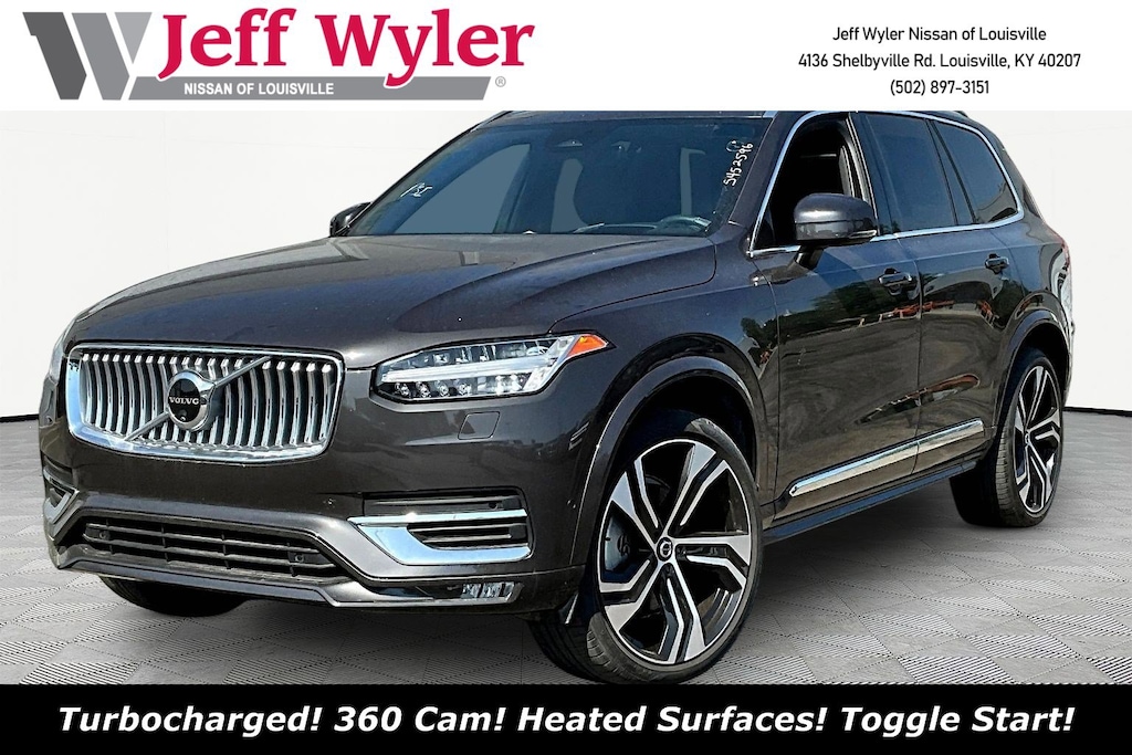 Jeff Wyler Nissan of Louisville is delighted to offer this handsome 2024 Volvo XC90 Ultimate in Platinum Gray Metallic. ** ALL WHEEL DRIVE/AWD **, ** BALANCE OF FACTORY WARRANTY **, ** ONE-OWNER CARFAX **, ** BLUETOOTH **, ** NAVIGATION **, ** SUNROOF/MOONROOF **, ** BACKUP CAMERA **, ** THIRD ROW SEATING **, ** LEATHER INTERIOR **, ** HEATED SEATS **, ** PUSH-BUTTON START **, ** GREAT FUEL ECONOMY **, and ** HOME DELIVERY OPTIONS! ** Protection Package Premier (All-Weather Floor Mats, Bumper Cover, Cargo Tray, First Aid Kit, and Wheel Locks), AWD, Maroon Brown Leather, 14 Speakers, 3rd row seats: bucket, 4-Wheel Disc Brakes, ABS brakes, Air Conditioning, Alloy wheels, AM/FM radio: SiriusXM, Anti-whiplash front head restraints, Apple CarPlay, Auto High-beam Headlights, Auto-dimming door mirrors, Auto-dimming Rear-View mirror, Automatic temperature control, Brake assist, Bumpers: body-color, Delay-off headlights, Driver door bin, Driver vanity mirror, Dual front impact airbags, Dual front side impact airbags, Electronic Stability Control, Emergency communication system: Volvo Cars App w/4 Year Subscription, Exterior Parking Camera Rear, Four wheel independent suspension, Front anti-roll bar, Front Bucket Seats, Front Center Armrest w/Storage, Front dual zone A/C, Front fog lights, Front reading lights, Fully automatic headlights, Garage door transmitter: HomeLink, Genuine wood dashboard insert, Genuine wood door panel insert, harman/kardon® Speakers, Headlight cleaning, Heads-Up Display, Heated & Ventilated Front Bucket Seats, Heated door mirrors, Heated front seats, Heated rear seats, Heated steering wheel, Illuminated entry, Integrated rear child seats, Knee airbag, Low tire pressure warning, Memory seat, Navigation System, Occupant sensing airbag, Outside temperature display, Overhead airbag, Panic alarm, Passenger door bin, Passenger vanity mirror, Perforated Nappa Leather Upholstery, Power door mirrors, Power driver seat, Power Liftgate, Power moonroof, Power passenger seat, Power steering, Power windows, Radio data system, Radio: harman/kardon Premium Audio System, Rain sensing wipers, Rear air conditioning, Rear anti-roll bar, Rear dual zone A/C, Rear fog lights, Rear reading lights, Rear seat center armrest, Rear window defroster, Rear window wiper, Remote keyless entry, Security system, Speed control, Speed-sensing steering, Split folding rear seat, Spoiler, Steering wheel mounted audio controls, Tachometer, Telescoping steering wheel, Traction control, Trip computer, Turn signal indicator mirrors, Variably intermittent wipers, Ventilated front seats, Wheels: 21" 8-Multi Spoke Black Diamond Cut Alloy, and Wheels: 22" 5-Double Spoke Black Diamond Cut Alloy Our PRE-OWNED vehicles are put through a rigorous 167- POINT QUALITY ASSURANCE INSPECTION along with an average amount of over $1,400.00 SPENT to recondition each vehicle so we can be sure to deliver you the highest quality vehicle like you deserve! ***ONLINE PRICE DOES NOT INCLUDE WYLER FAMILY FIRST PACKAGE*** Stop by 4136 Shelbyville Road to see for yourself, or give us a call @ 502-897-3151 to schedule your test drive! ** ALL WHEEL DRIVE/AWD **, ** BALANCE OF FACTORY WARRANTY **, ** ONE-OWNER CARFAX **, ** BLUETOOTH **, ** NAVIGATION **, ** SUNROOF/MOONROOF **, ** BACKUP CAMERA **, ** THIRD ROW SEATING **, ** LEATHER INTERIOR **, ** HEATED SEATS **, ** PUSH-BUTTON START **, ** GREAT FUEL ECONOMY **, AWD, Maroon Brown Leather, 14 Speakers, 3rd row seats: bucket, 4-Wheel Disc Brakes, ABS brakes, Air Conditioning, All-Weather Floor Mats, Alloy wheels, AM/FM radio: SiriusXM, Anti-whiplash front head restraints, Apple CarPlay, Auto High-beam Headlights, Auto-dimming door mirrors, Auto-dimming Rear-View mirror, Automatic temperature control, Brake assist, Bumper Cover, Bumpers: body-color, Cargo Tray, Delay-off headlights, Driver door bin, Driver vanity mirror, Dual front impact airbags, Dual front side impact airbags, Electronic Stability Control, Emergency communicati